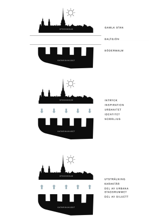 När huset nu rustas upp av Atrium Ljungberg står Reflex för välavvägda tillägg i form av en påbyggnadsvåning med tillhörande taklandskap och terrasser. Med inspiration från Stadsgårdens och Södermälarstrands konstnärsateljéer med sina effektfulla norrljus har vi tagit fram restaurang- och kontorslokaler med höga och rymliga glaspartier vars intryck förstärks av vertikala lameller i fasaden.