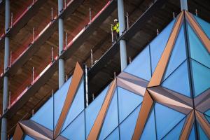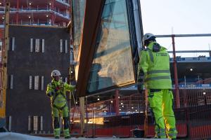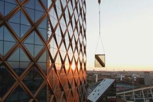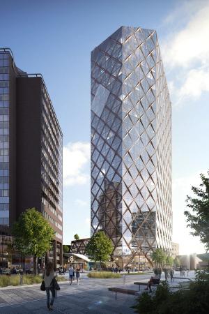 Med sina 28 våningar och 30 000 m2 är Kineum en byggnad som syns och tar plats i staden. Kineum vågar sticka ut både till sitt yttre och inre och skapa en levande, lekfull och färgstark plats. Fasaden är uppbyggd med våningshöga glastrianglar.