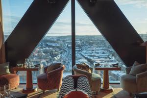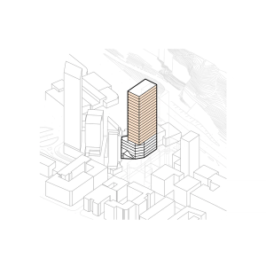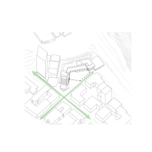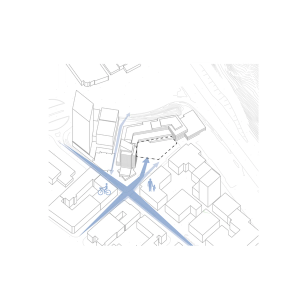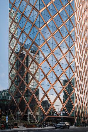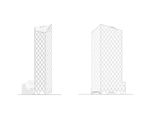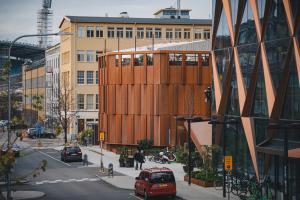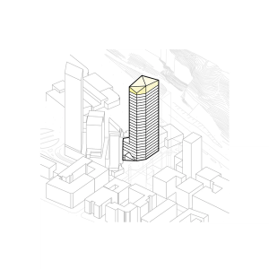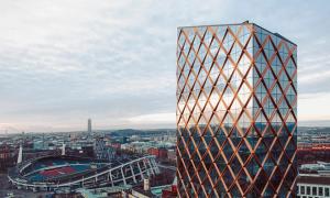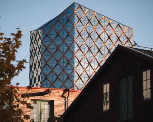 En detalj som gör huset unikt är valet av ett diamantformat glastak. Husets vinkel skapar en större vertikalitet och taket upplevs snarare som en femte fasad. Tornet skapar ett dynamiskt avslut som ger staden en ny spännande silhuett.